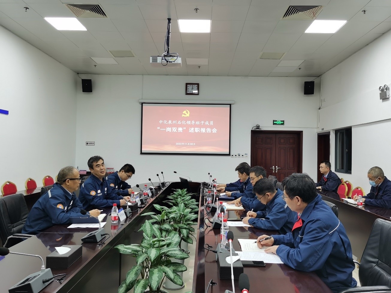 為切實(shí)推動(dòng)落實(shí)全面從嚴(yán)治黨主體責(zé)任,壓緊壓實(shí)公司黨委領(lǐng)導(dǎo)班子管黨治黨政治責(zé)任,根據(jù)中央和上級(jí)黨委關(guān)于領(lǐng)導(dǎo)干部“一崗雙責(zé)”述職有關(guān)規(guī)定和要求,2022年11月30日,中化泉州石化召開2022年度領(lǐng)導(dǎo)班子“一崗雙責(zé)”述職報(bào)告會(huì)。公司黨委書記、總經(jīng)理錢立新主持會(huì)議,公司領(lǐng)導(dǎo)班子成員參加會(huì)議,黨群工作部、人力資源部、紀(jì)檢室負(fù)責(zé)人列席會(huì)議。